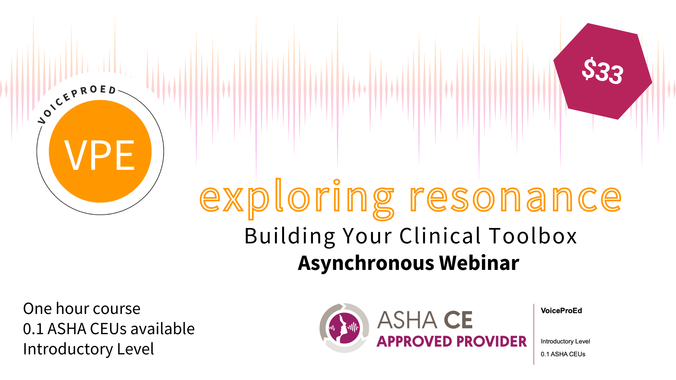 Are you a voice clinician just starting your journey into the hows and whys of voice function? Then you won’t want to miss our beginner-friendly course, 'Exploring Resonance: Building Your Clinical Toolbox.' This is your chance to dive deep into the world of resonant voice therapy and come away with practical, ready-to-use techniques. We’ll guide you through the anatomy behind creating resonance strategies, demystify the principles of resonant voice therapy, and help you learn how to craft personalized exercises to use in the clinic and voice studio.